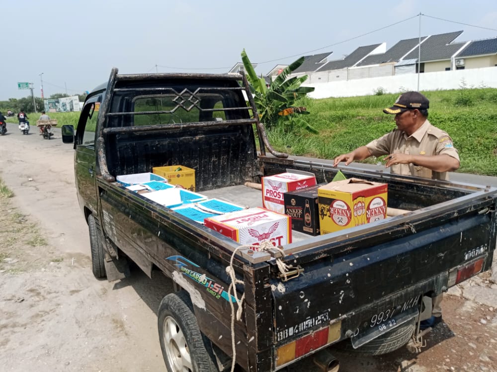 Penyisiran yang dipimpin langsung, Camat Pasar Kemis H.Sony Karsan berhasil menyita beberapa karton minuman keras dari berbagai merek.