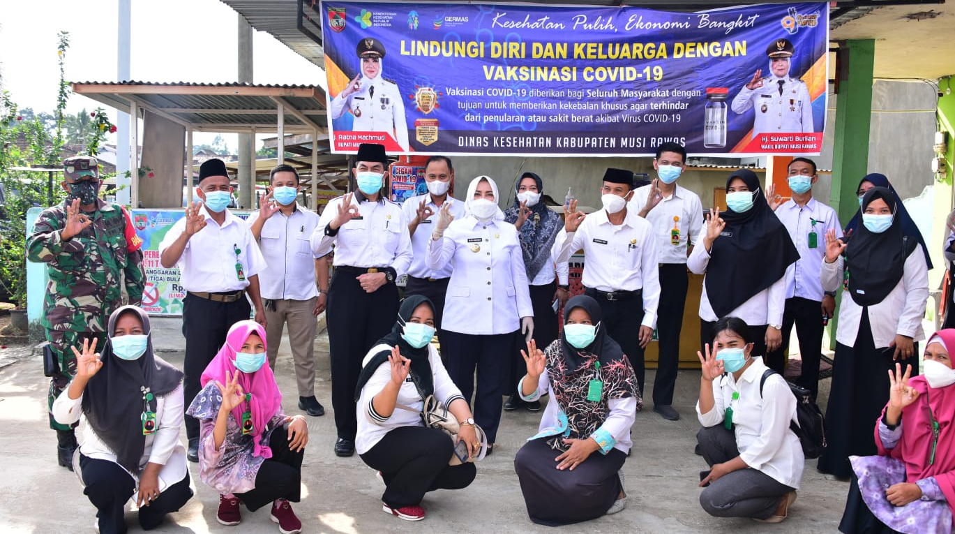Bupati Musi Rawas Hj.Ratna mahmud di sambut langsung oleh camat sumberharta sudisman beserta jajarannya dan kepala upt puskesmas kecamatan sumberharta beserta tenaga kesehatan lainnya.