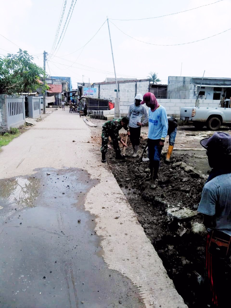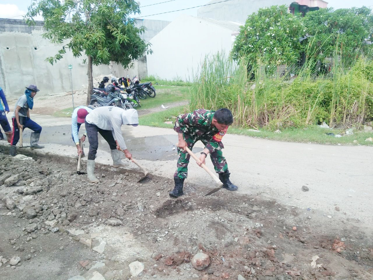“Adanya kegiatan Babinsa jajarannya tersebut sekaligus sebagai bagian dari pembinaan Bakti Masyarakat dalam menyelesaikan permasalahan di lingkungannya dengan budaya gotong royong “ ucap Pelda Karmadi
