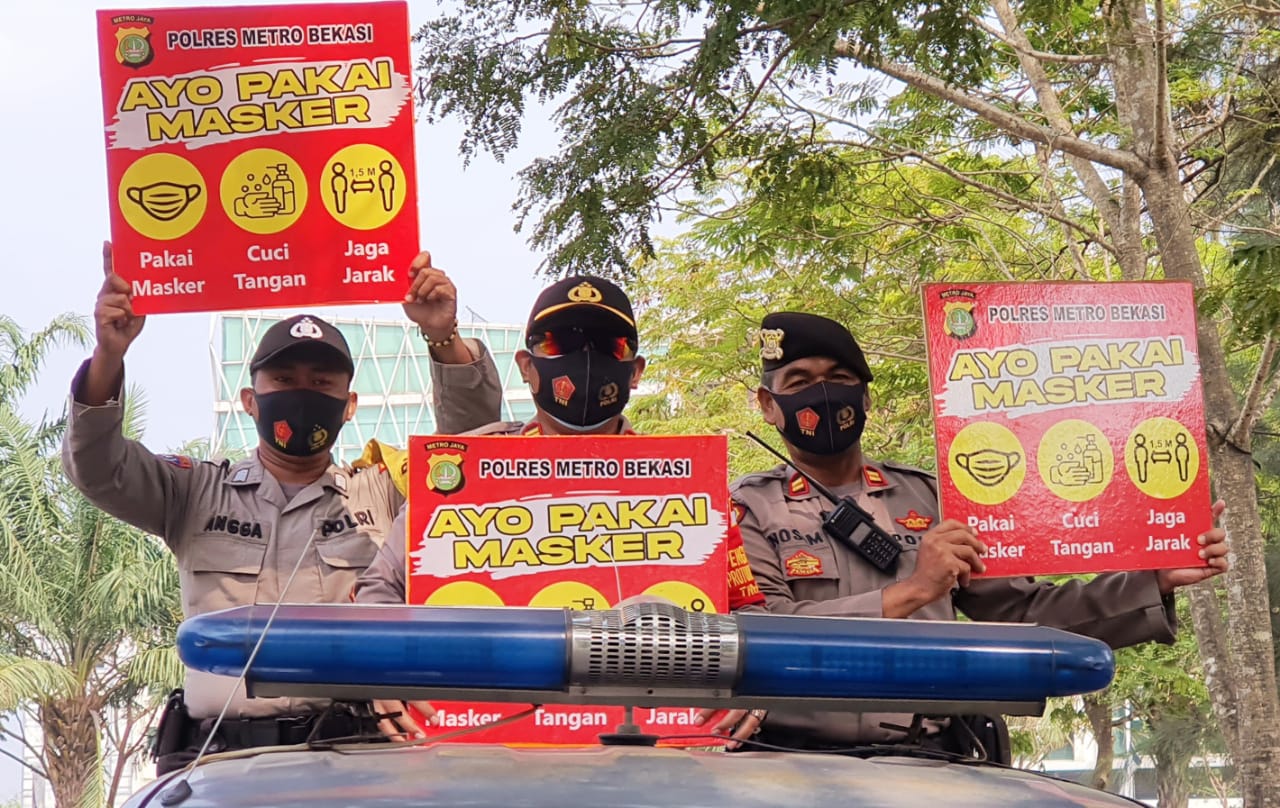 NASIONALXPOS.CO.ID,BEKASI- Segala upaya di lakukan untuk memutuskan mata rantai virus dan mencegah wabah covid 19, termasuk Polsek Cikarang pusat selalu rutin sebanyak tiga kali dalam satu hari melakukan operasi yustisi dan woro – woro dengan kendaraan untuk mencari pelanggar yang kedapatan tidak menggunakan masker dan tidak mematuhi protokol kesehatan.