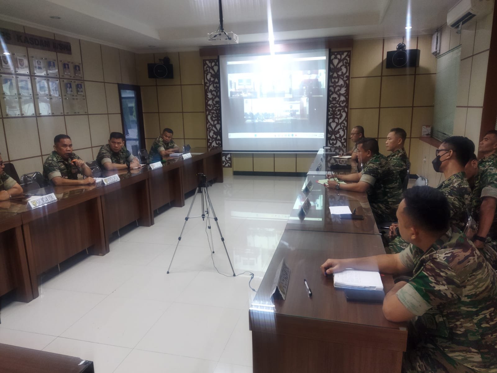 Hadir juga melalui Vicon, antara lain Kasiop Kasrem 041/Gamas, dan para Pasiops Korem jajaran Kodam II/Swj.