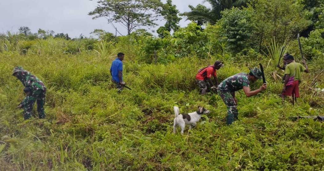 NASIONALXPOS.CO.ID, PAPUA – Dalam rangka menurunkan serangan penyakit malaria dan menciptakan lingkungan yang sehat, Satgas Yonif 143/TWEJ bersama masyarakat pedalaman Papua membersihkan semak belukar sekitar pemukiman di Kampung Batom, Distrik Batom, Kabupaten Pegunungan Bintang, Papua Pegunungan, Minggu (02/04/2023).