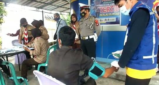 Cek Aplikasi Pedulilindungi, Pospam Ciujung Polres Serang Lakukan Vaksinasi dan Test Swab Gratis Bagi Pengendara
