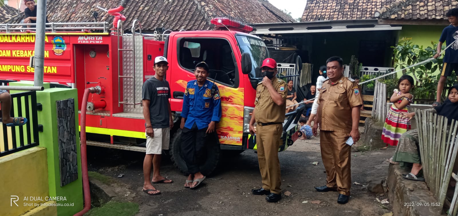 NASIONALXPOS.CO.ID, LAMSEL – Mendapat informasi lewat telpon seluler dari salah satu warga desa Palembapang, Tim Damkar segera mendatangi rumah milik warga, Dusun 4, Rt 08, Desa Palembapang, Kecamatan Kalianda, Kabupaten Lampung Selatan (Lamsel) milik bapak Daud bin Said (79) tahun yang dikabarkan warga di lalap Sijago merah senin, (05/09/2022).