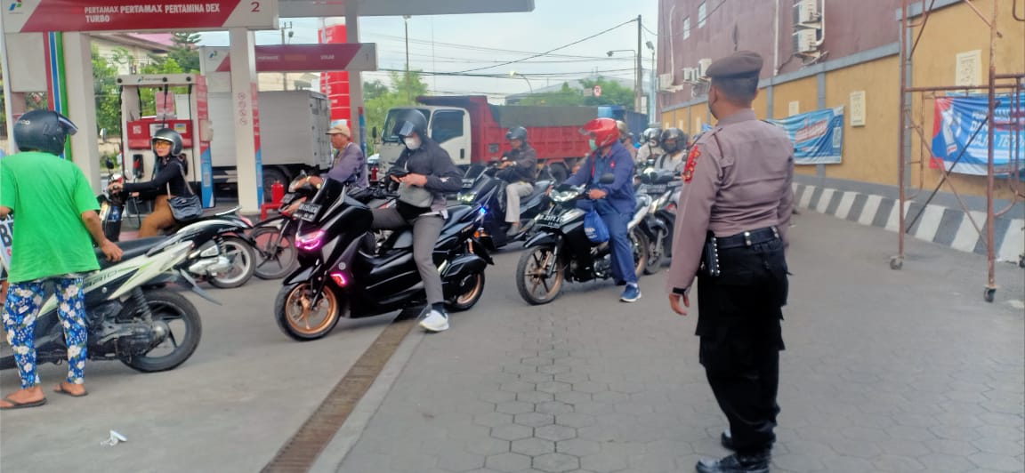 Terpantau pada SPBU tersebut, terjadi antrean pada pengisian BBM jenis solar, Personil melaksanakan koordinasi dengan Karyawan SPBU agar antrean kendaraan bisa tertib dan tidak mengganggu dan menghambat arus lalu lintas serta penyaluran BBM bisa pasti sampai ke masyarakat.