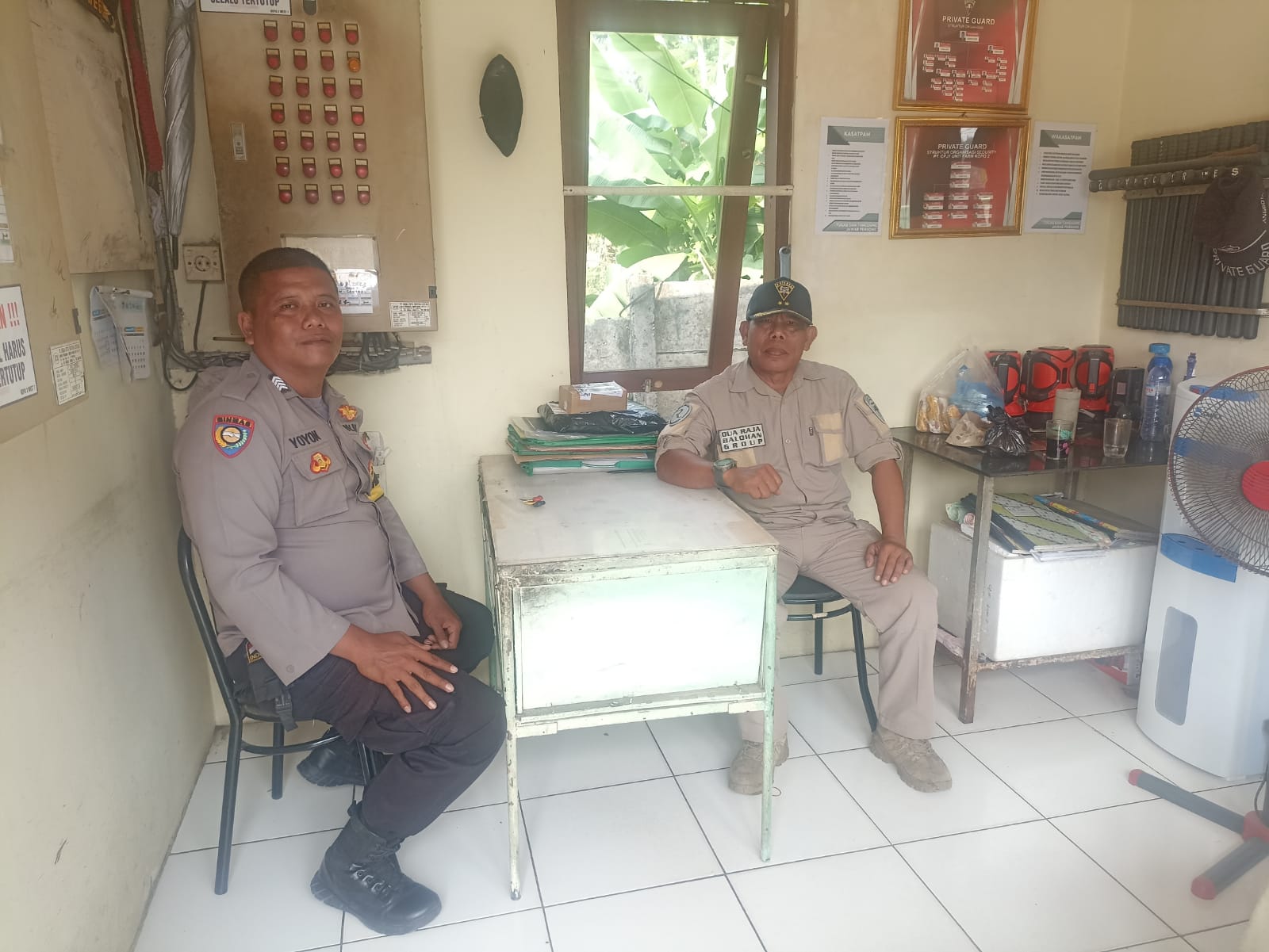 Pada kesempatan tersebut, Bhabinkamtibmas melaksanakan patroli dialogis dengan salah satu pegawai satuan pengamanan (satpam) perusahaan, agar selalu waspada terhadap situasi di sekitar perusahaan.