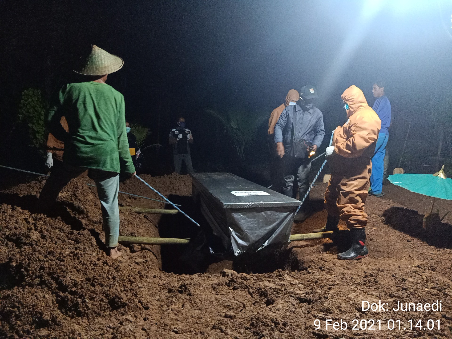 Sunarto kembali menegaskan, agar masyarakat harus tetap disiplin dalam menjalankan protokol kesehatan, “ingat bahwa Covid-19 betul-betul ada dan sudah banyak memakan korban jiwa, ” , tegas Sunarto. Pemakaman jenazah yang dilaksanakan dengan menggunakan protokol kesehatan Covid-19 selesai sekira pukul 2:00 WIB. (Junaedi)