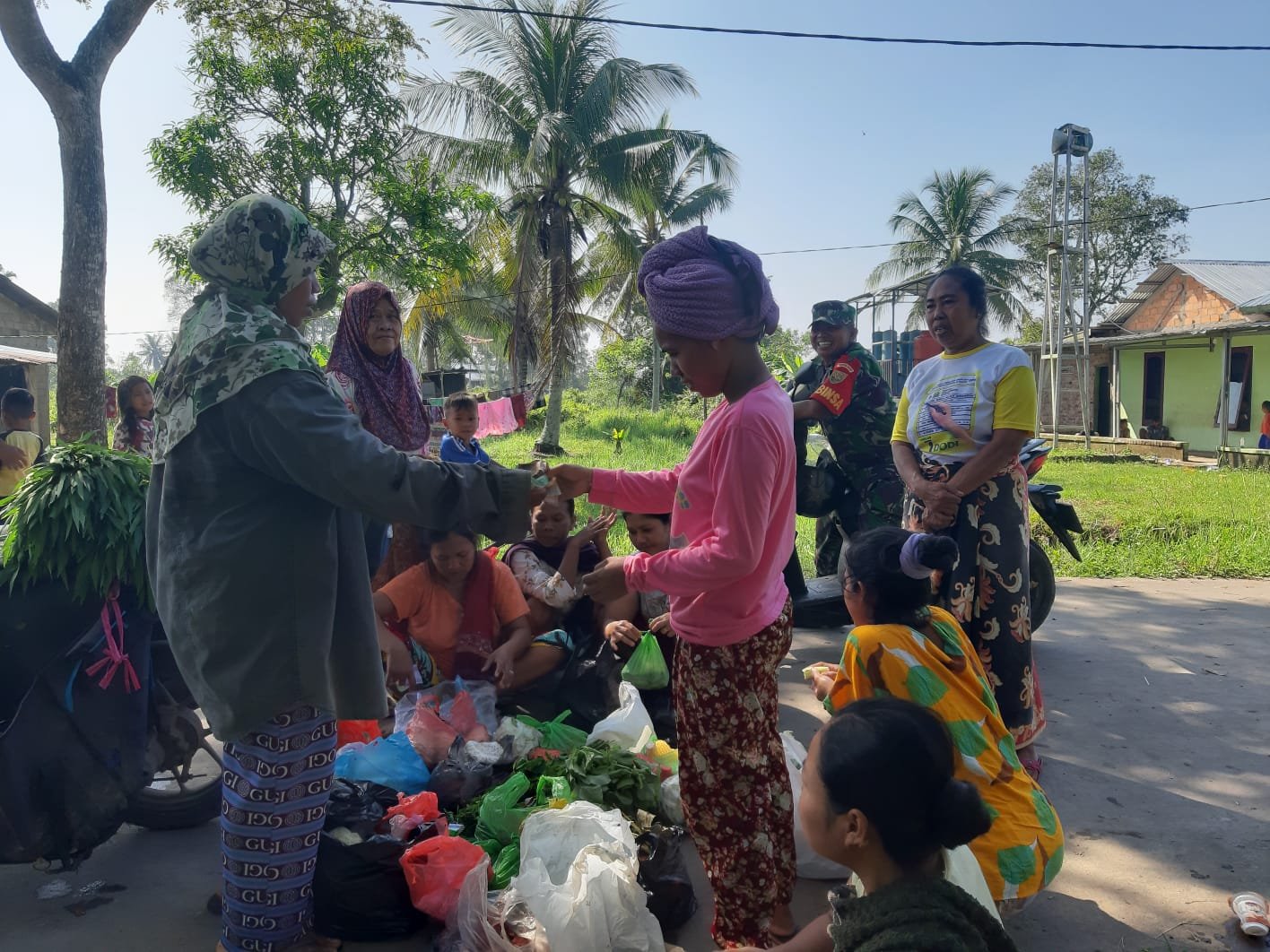 NASIONALXPOS.CO.ID, PALEMBANG – Babinsa Kelurahan Sukamulya Koramil 418-08/Sako Peltu Mulyadi dan Serka Joko Pranoto, melaksanakan Komsos dengan Ibu-ibu yang sedang berbelanja sayuran, Sabtu (13/5/2023).