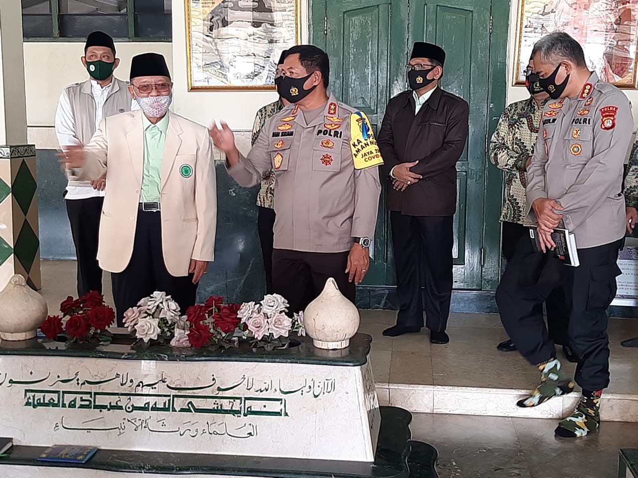 Setelah meninjau pelaksanan rapid test, Kapolda rama tamah di kediaman K.H. Amien Noer, dan menyempatkan diri berziarah ke makam pahlawan nasional K.H. Noer Alie.
