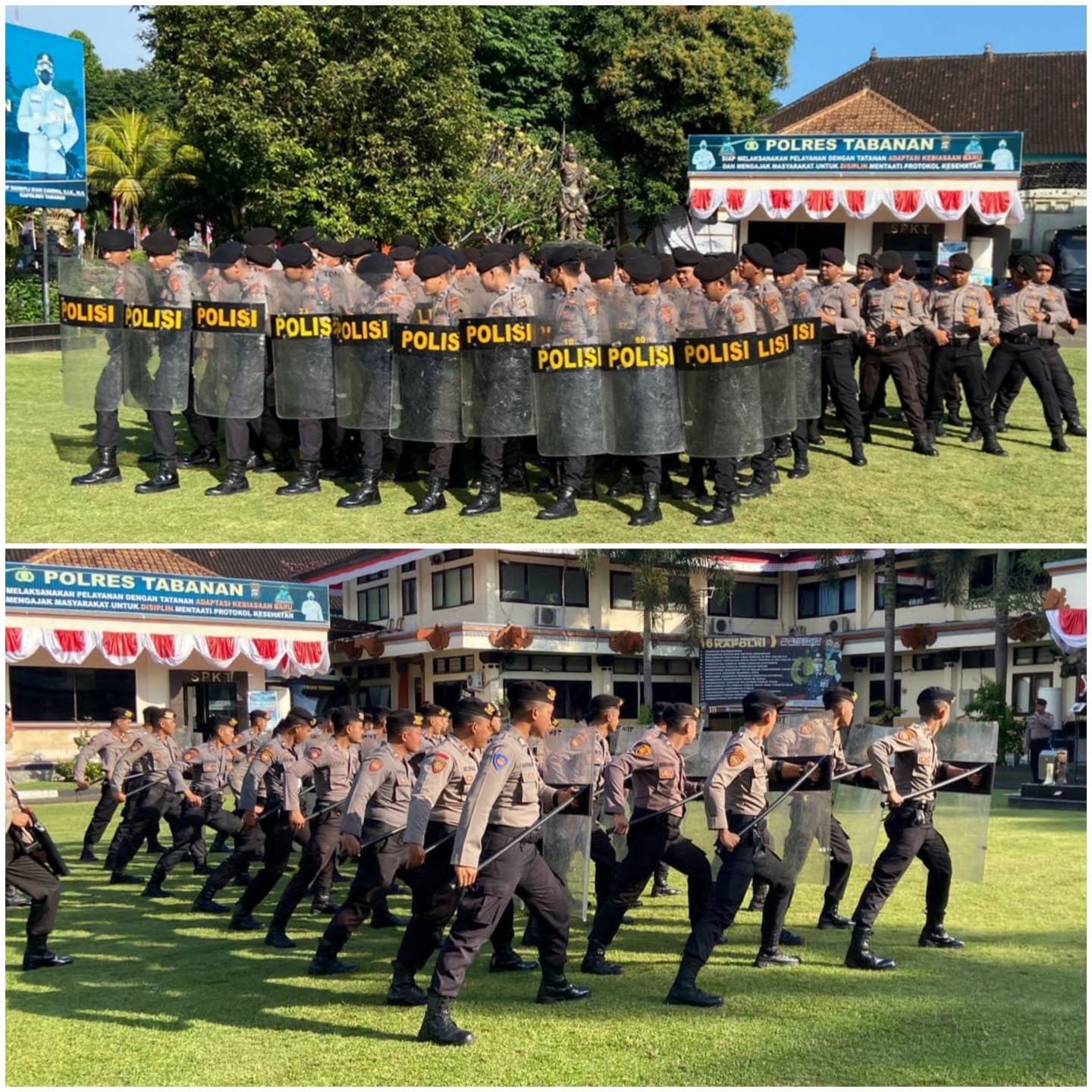 Kegiatan latihan bersama bertempat di lapangan Apel Polres Tabanan, diikuti oleh semua anggota Dalmas Awal dan anggota Dalmas Lanjut dengan jumlah seluruhnya sebanyak 77 personel, yang diawali dengan melaksanakan Apel bersama dipimpin langsung oleh Kasat Samapta. Sabtu, (13-8-2022) pagi.