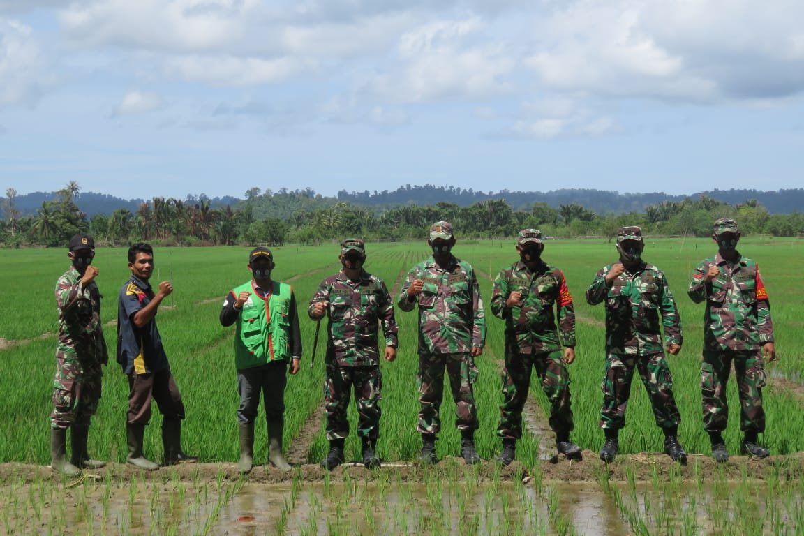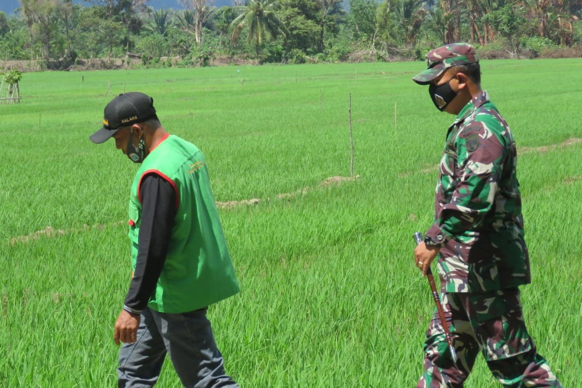 Di daerah Nasreuhe dan mutiara bersama Koramil, PPL (Ibu Uswatun dan jajaran) serta perangkat desa, sejauh mata memandang terhampar sawah dengan padi tumbuh serentak,”ucapnya.