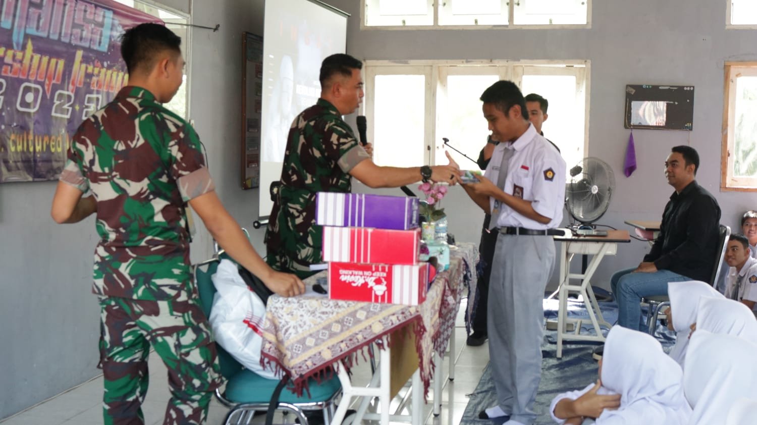 “Terima kasih banyak pak Dandim, sudah mau berbagi dengan kami. Kami kira bakalan tegang, kaku, ada rasa takut tapi ternyata pak tentara dari Kodim apalagi pak Dandim bisa asyik banget juga, sehingga seperti gak ada sekat jarak. Walaupun tetap kelihatan juga sih tegas disiplinnya. Terima kasih banyak juga atas pemberian Alkap sekolah buat kami dari pak Dandim,” ujar salah satu siswa.