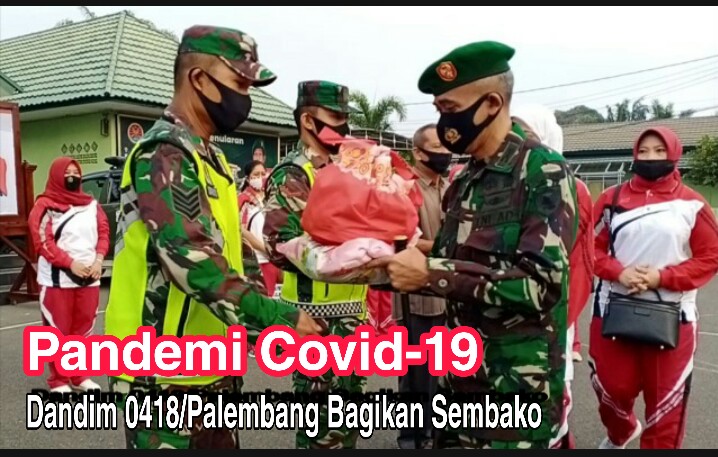 Sebelum melakukan pendistribusian sembako, terlebih dahulu dilakukan penyerahan sembako secara simbolis oleh Danrem 044/Gapo bersama Dandim 0418/Palembang dan Ketua Persit KCK Koorcab Rem 044 PD II/Sriwijaya.