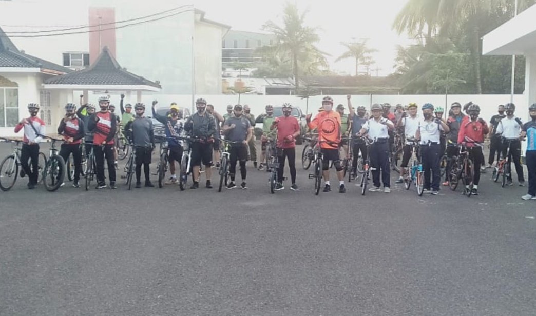 NASIONALXPOS.CO.ID, PALEMBANG – Dandim 0418/Palembang, Kolonel Inf Heny Setyono SPsi, mengikuti kegiatan gowes bersama Korem 044/Gapo dan Polda Sumsel, di lapangan Pakri Jalan Bambang Utoyo Kelurahan Duku Kecamatan Ilir Timur II Palembang, Selasa (28/7/2020).
