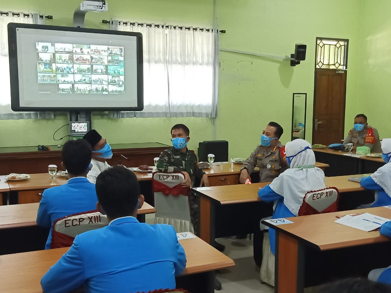 NASIONALXPOS.CO.ID, TANGERANG – Menjelang natal dan tahun baru 2021 menuju wilayah aman dan kondusif Dandim 0510/Trs Letkol Inf Bangun I E Siregar bersama Kapolresta Tangerang Kombespol Ade Ary Syam Indardi dan santri wan serta santri wati bersilaturahmi dengan Pangdam Jaya/Jayakarta Mayjen TNI Dudung Abdurachman ,S.E.,MM secara Virtual, Rabu,(23/12/2020).