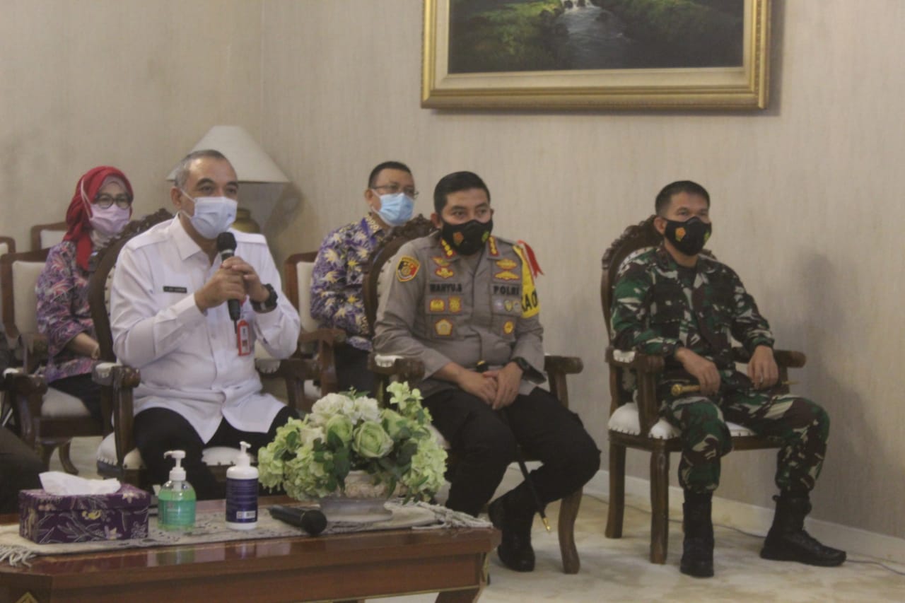 Kegiatan penerimaan kunjungan daerah tenaga ahli pendamping Satgas penanganan Covid-19 Nasional dilakukan di Pendopo Bupati Tangerang Jl. Kisamaun No. 1 Kota Tangerang, Kamis (06/05/2021).