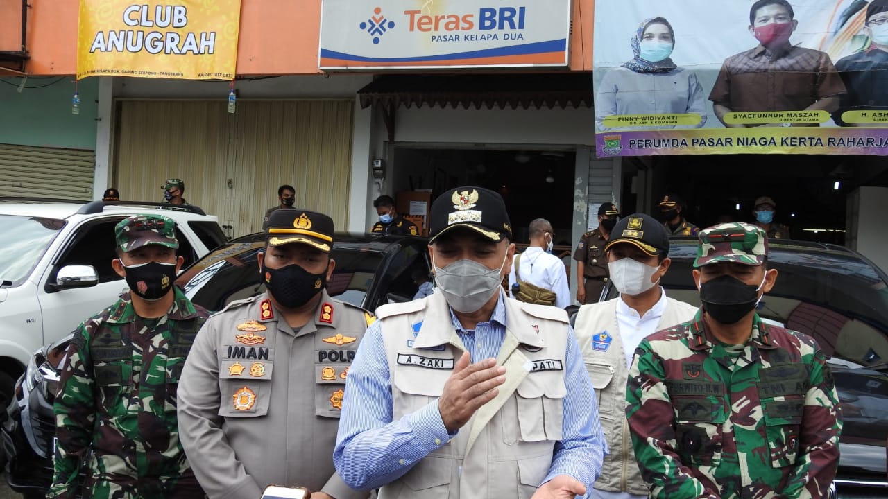 Sengaja datang di pasar Kelapa Dua dan didampingi oleh Danrem 052/Wkr beserta Dandim 0510/Trs Menekan angka penyebaran Covid-19, dalam hal peningkatan penularan beberap hari terakhir ini sudah mulai menurun diharapkan kita akan melakukan kampanye Protokol Kesehatan bagi masyarak harus tetap waspada dan yang paling penting memahami bahwa di Kabupaten Tangerang wabah penularan masih terjadi