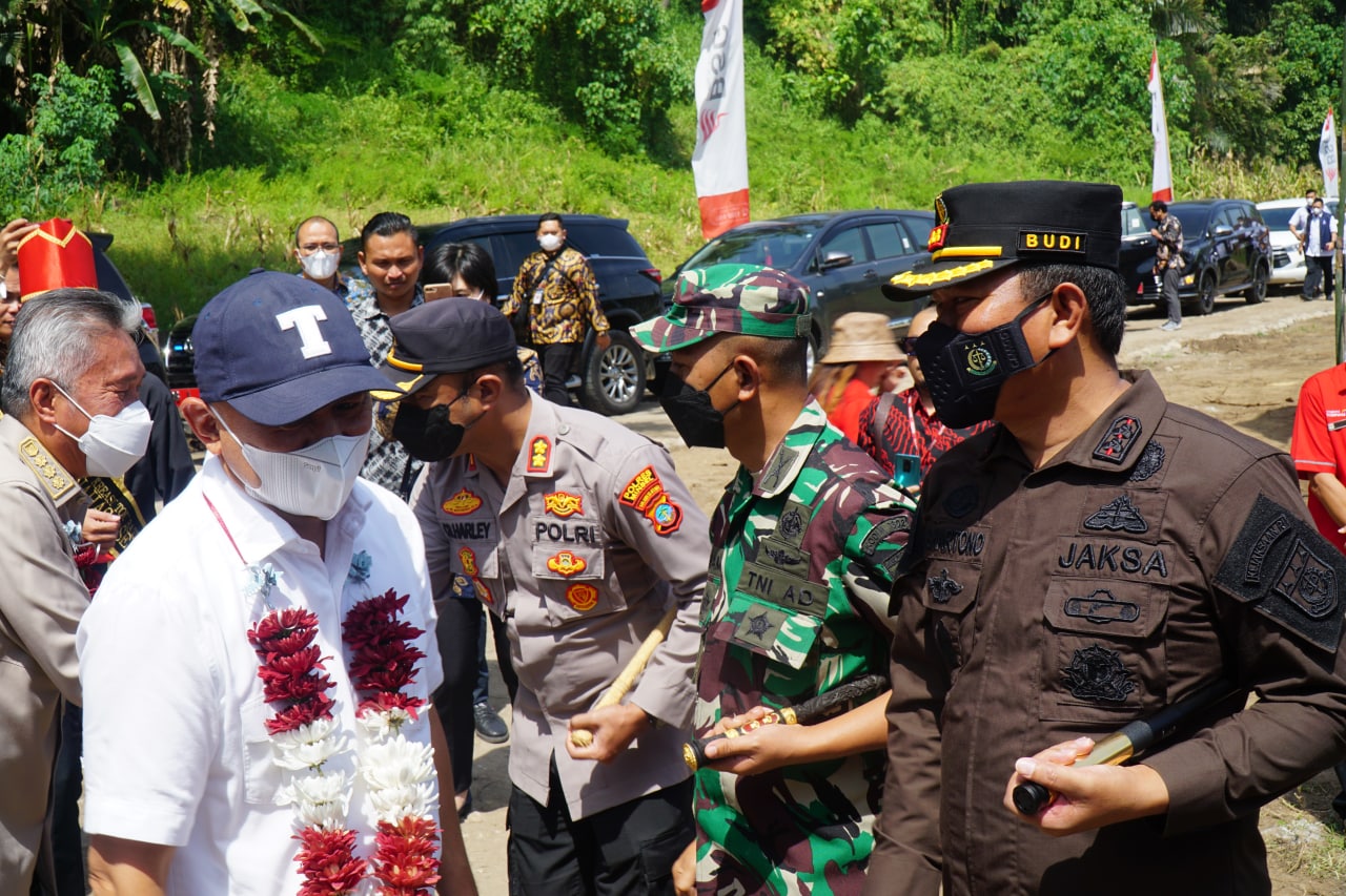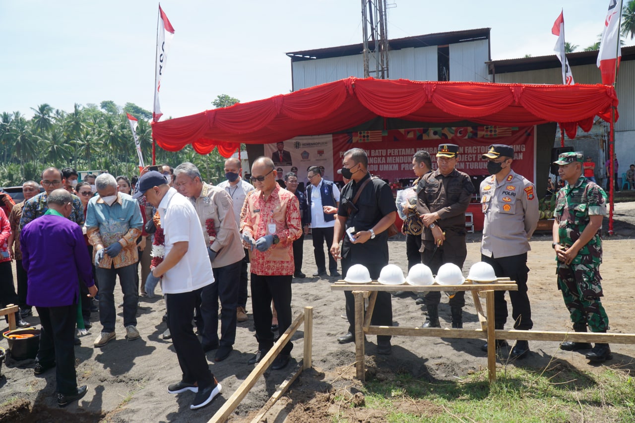 NASIONALXPOS.CO.ID,MINSEL,- Komandan Kodim 1302/Minahasa Letkol Inf Ircham Effendy bersama Forkopimda Kabupaten Minahasa Selatan mendampingi kujungan kerja Mentri Koperasi dan Usaha Kecil Menengah Republik Indonesia Teten Masduki serta peletakan batu pertama pembangunan Major Project Factory shering untuk mendukung Major Project Pengelolaan Terpadu UMKM Produk Kelapa dan Turunannya, di Desa Kapitu, Kecamatan Amurang Barat, Kabupaten Minahasa Selatan, Provinsi Sulawesi Utara, Jumat (23/09/2022), pukul 09.46 wita.
