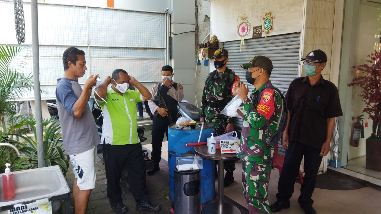 “Disamping tetap dilaksanakannya patroli gabungan penegakan PPKM (pembatasan kegiatan masyarakat), para babinsa agar terus himbau warga secara masif agar tetap menerapkan prokes dan segera melaksanakan vaksin covid-19 untuk yang belum baik itu tahap 1, tahap 2, maupun dosis lanjutan booster”, tegas Dandim.