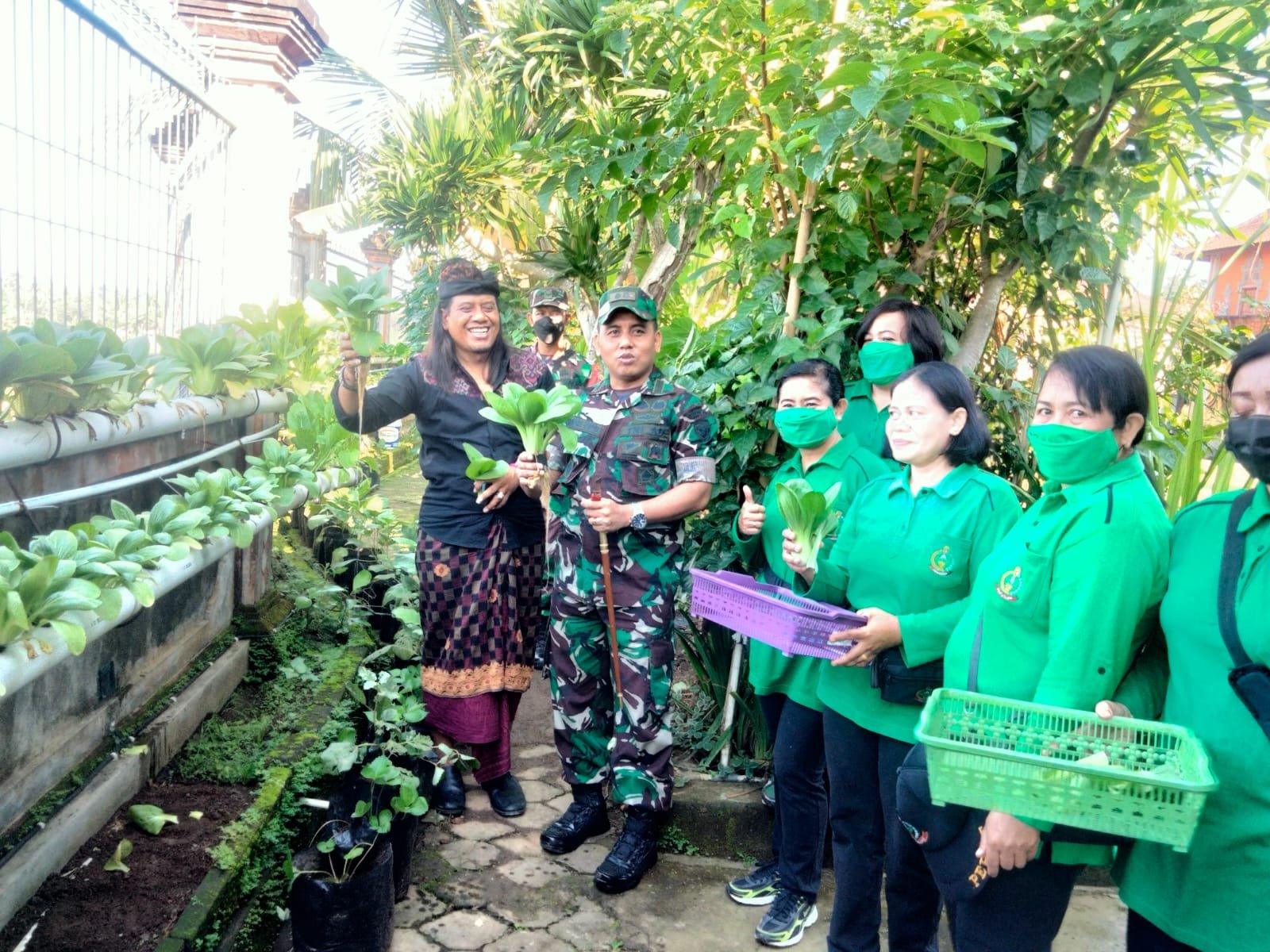 Kegiatan panen Holtikultura di Sanggar Seni Paripurna di ikuti oleh Dandim 1616/Gianyar, Letkol Inf.Hendra Cipta S Sos., Pasi Teritorial Kodim 1616/Gianyar Kapten Inf. Hengky Histoveri, Danramil 1616-04/Blahbatuh Kapten Inf. Cokorda Agung Semadi Agustina, Babinsa Desa Bona, Anggota Staf Teritorial Kodim 1616/Gianyar, Anggota Persit Cab.XXXV/Gianyar dan Pemilik Sanggar Seni Paripurna, I Made Sidia. (@AJIK 1964).