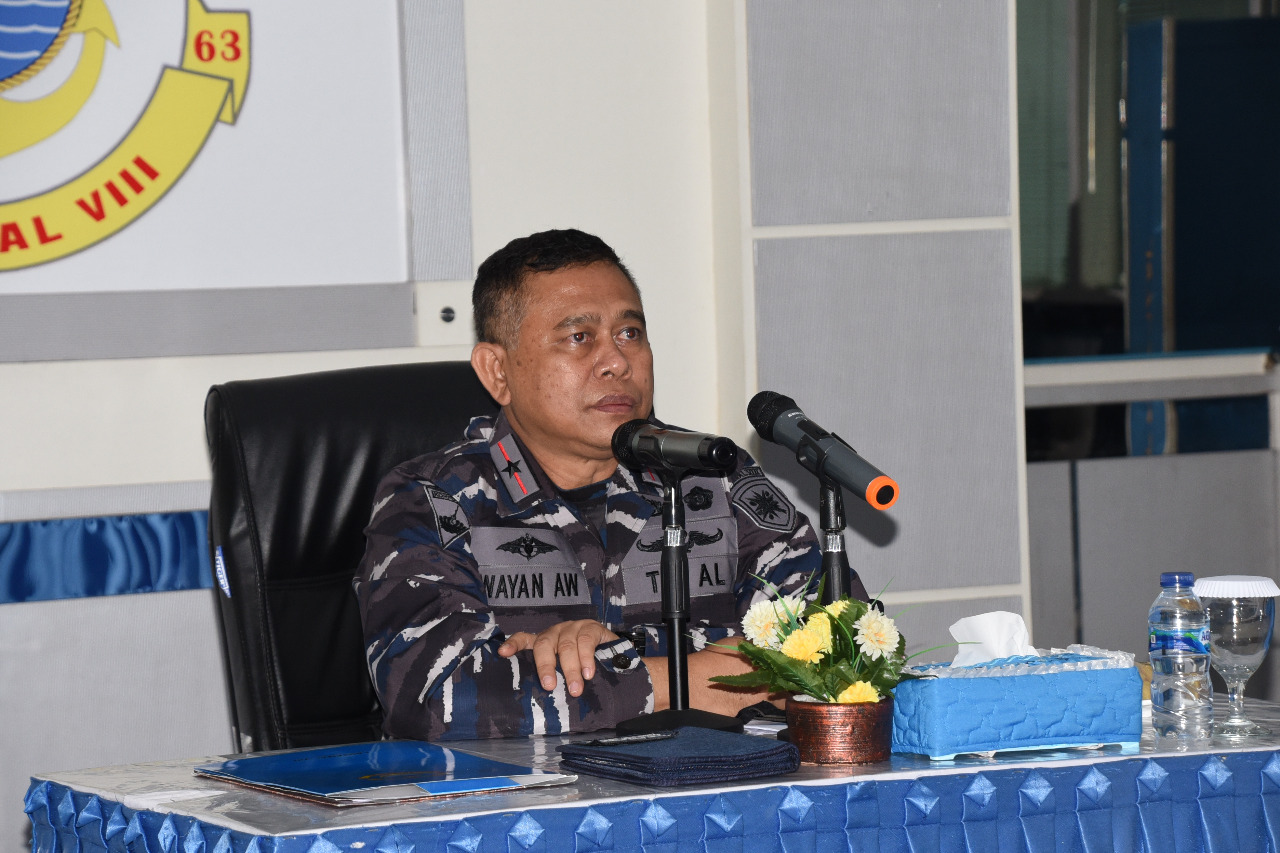 NASIONALXPOS.CO.ID, MANADO– Komandan Pangkalan Utama TNI Angkatan Laut (Danlantamal) VIII Brigadir Jenderal TNI (Mar) I Wayan Ariwijaya, S.E., CfrA memberikan pembekalan kepada para Bintara Pembina Potensi Maritim (Babinpotmar) Lantamal VIII di Ruang Serbaguna Markas Komando Lantamal VIII Jalan Yos Sudarso No.1 Kairagi Weru Paal Dua Manado, Jumat (5/3/2021).