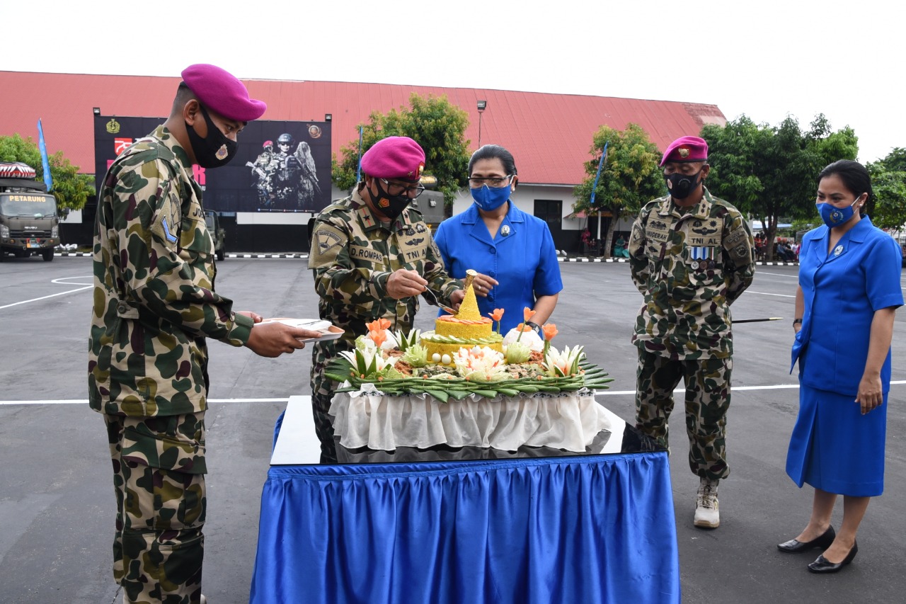 Acara Hut Ke-75 Korps Marinir dilaksanakan sederhana tapi meriah, dengan tetap menggunakan protap kesehatan Covid-19.