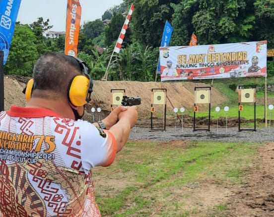 Lomba menembak pistol 20 meter Precision Eksekutif dilaksanakan seusai acara pembukaan Bhayangkara Anniversary 75th Shooting Championship 2021.