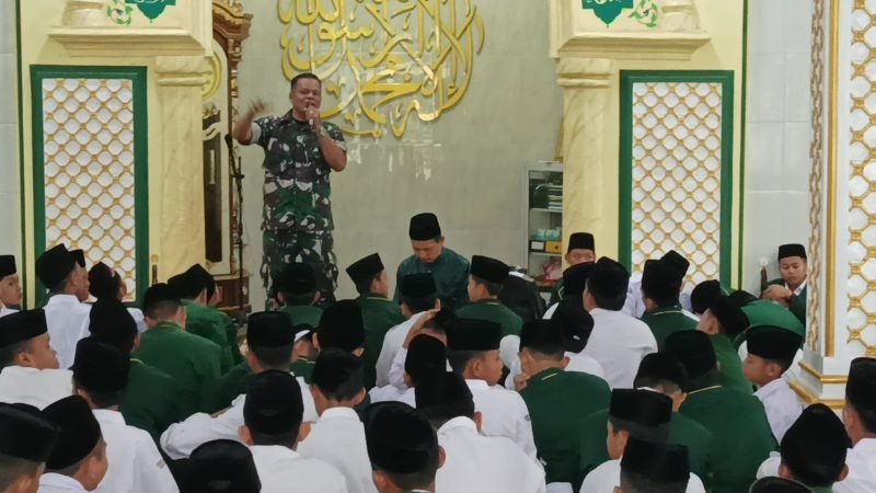 NASIONALXPOS.CO.ID, JAMBI – Danramil 415-08/Danau Teluk Kodim 0415/Jambi Kapten Inf Ibnu Hajar melaksanakan pemberian Materi Wawasan Kebangsaan (Wasbang) kepada Santri Ponpes Nurul Iman di Kelurahan Ulu Gedong Kecamatan Danau Teluk Kota Jambi, Senin (27/2/2023)