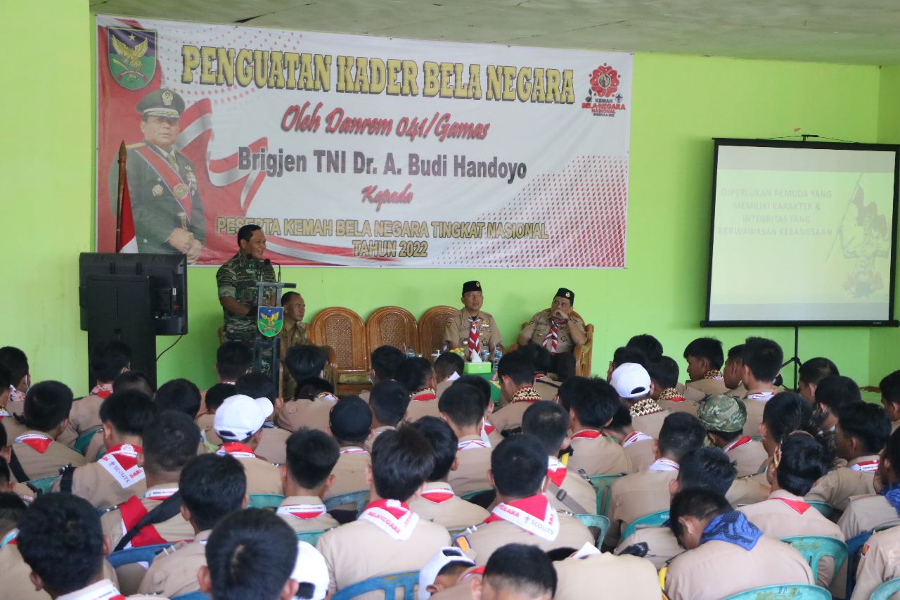 “Sebagai generasi muda untuk dapat menentukan arah masa depan secara baik dan bijak pagi ini ratusan anggota pramuka yang terpilih dan terbaik dari perwakilan masing-masing provinsi diberikan pembekalan penguatan Bela Negara untuk lebih meyakinkan kedewasaan serta kepercayaan diri sebagai generasi muda dan untuk menumbuhkan Rasa Cinta Tanah Air, Semangat Nasionalisme dan Menanamkan Kembali Nilai-Nilai Luhur Pancasila,” jelas Danrem.