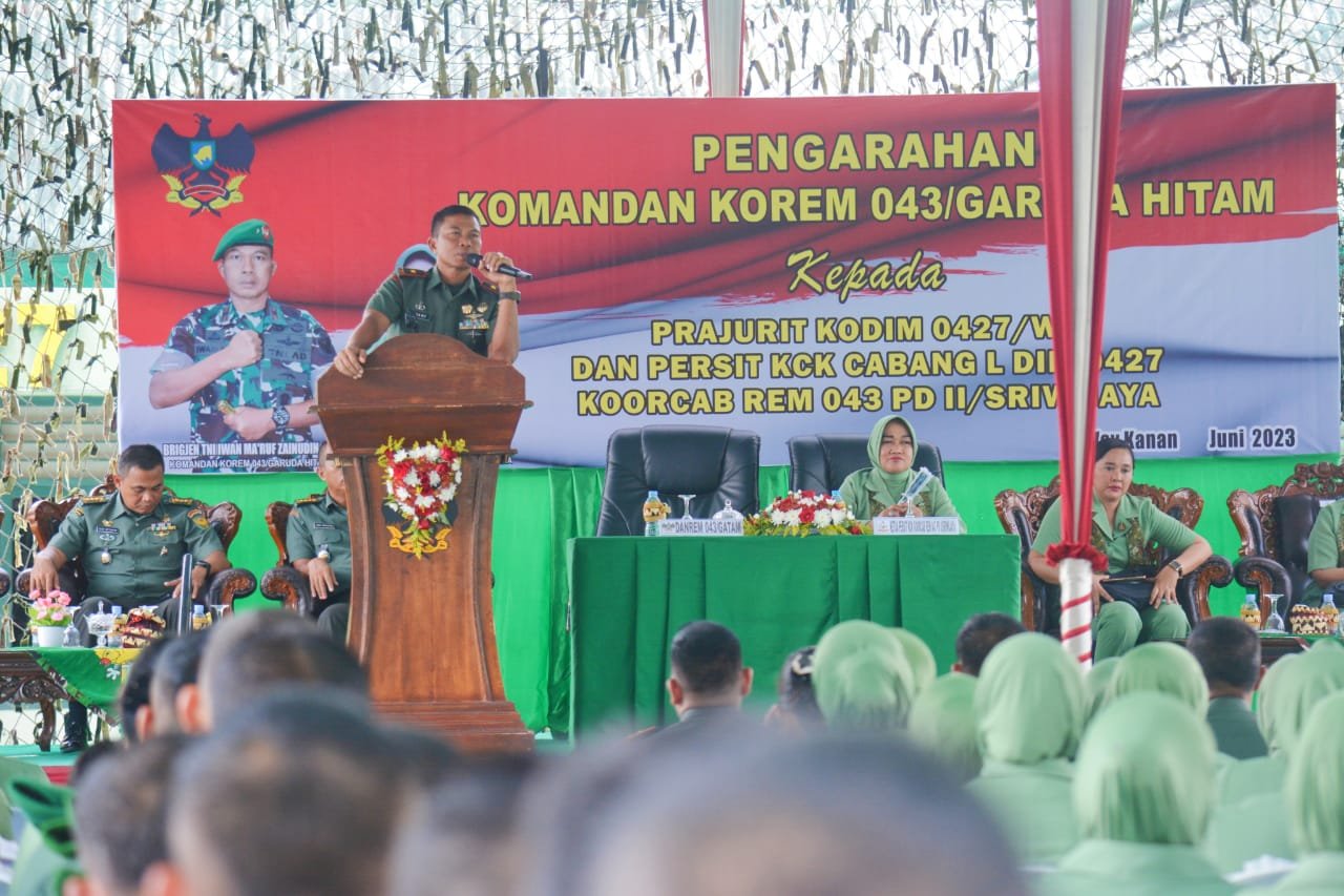 Usai mengikuti prosesi penyambutan Danrem beserta rombongan menuju ruang transit untuk menerima paparan satuan dari Dandim 0427/WK, dilanjutkan dengan pengarahan dari Danrem kepada Prajurit, PNS dan anggota Persit Kodim 0427/WK