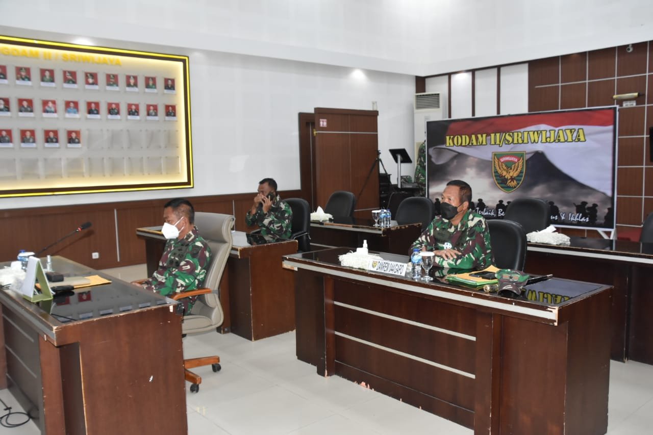 Kegiatan Rakor di Ruang Gatot Subroto Makodam II/Swj Jalan Jenderal Sudirman KM 2,5 Palembang tersebut, diselenggarakan secara Vidcon yang dipimpin Kepala Badan Penanggulangan Bencana Letjen TNI Doni Monardo.