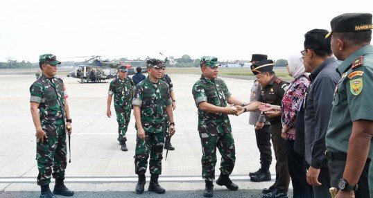 NASIONALXPOS.CO.ID, PALEMBANG – Komandan Korem 044/Gapo Brigjen TNI M. Naudi Nurdika S.I.P M.Si M.Tr (Han) menyambut kedatangan Kepala Staf Angkatan Darat (KSAD) Jenderal TNI Dr. Dudung Abdurachman, SE. MM beserta rombongan, di Bandar Udara Internasional Sultan Mahmud Badaruddin (SMB) II Kota Palembang, Kamis (7/9/2023).
