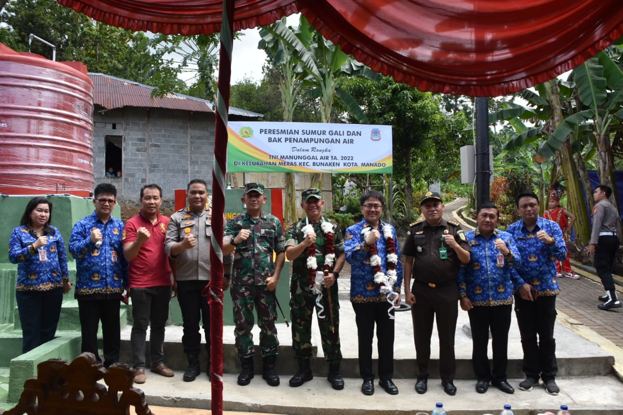 NASIONALXPOS.CO.ID.MANADO,-Peresmian sumur gali dan bak penampungan air di Kelurahan Meras, Kecamatan Bunaken dilakukan oleh Danrem 131/Santiago Brigjen TNI Mukhlis, S.A.P., M.M dan Wali Kota Manado Andrei Angouw, Selasa (29/11/2022).