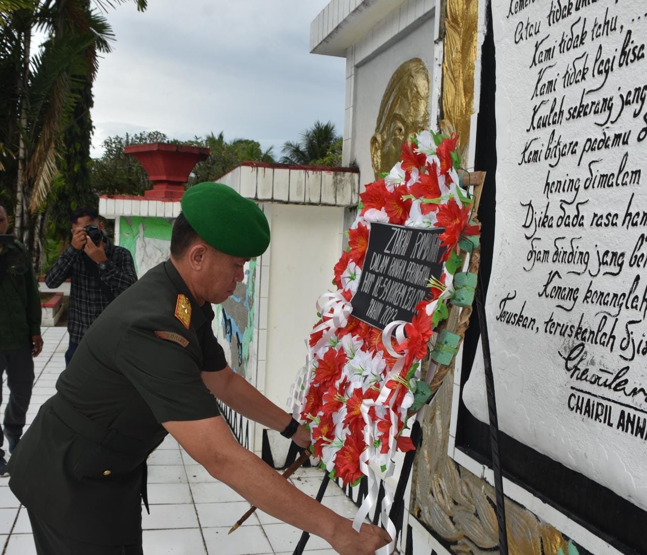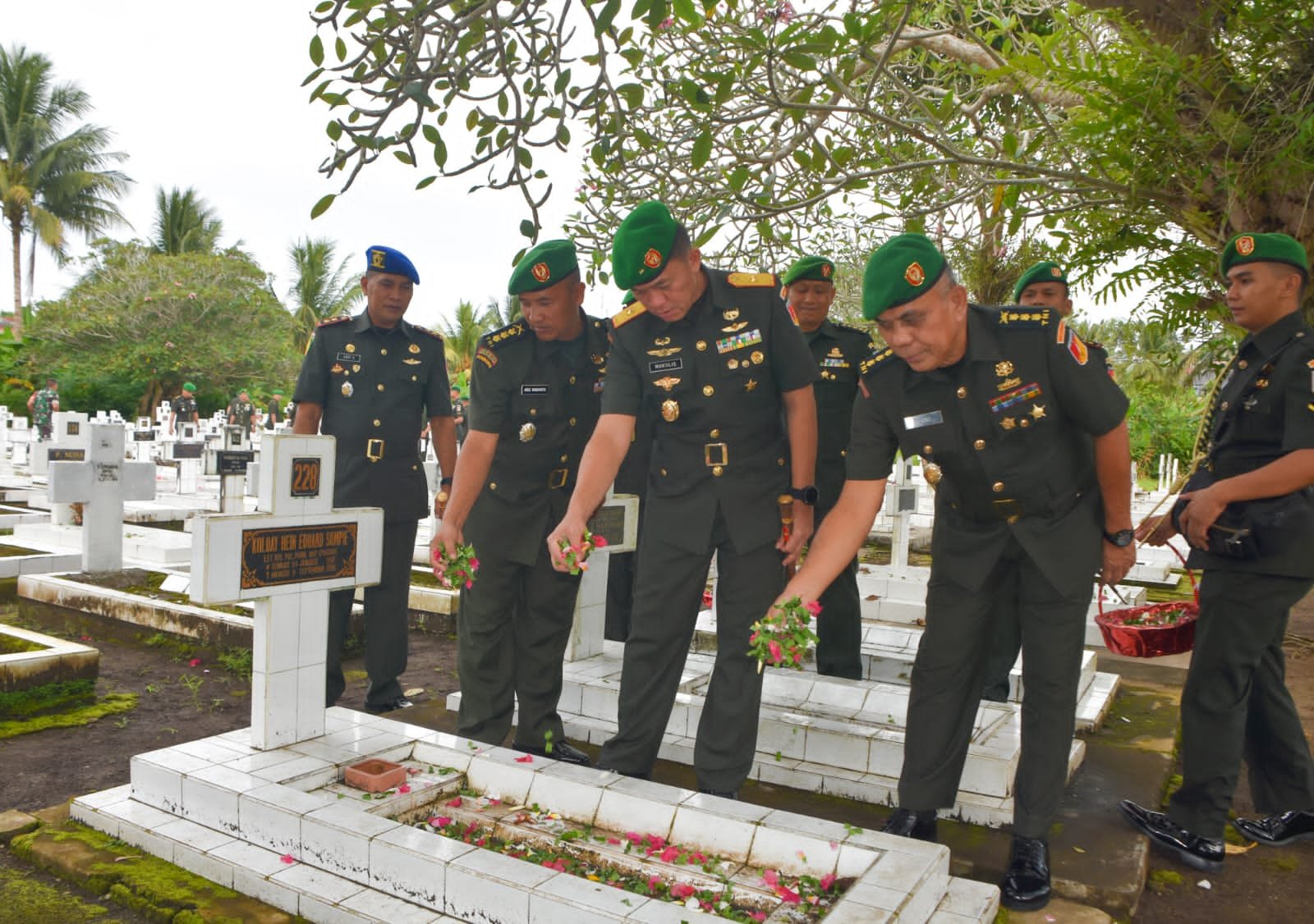 Ziarah rombongan yang dihadiri Para Kasi Kasrem, Dandim 1309/Mdo Kolonel Inf Daniel E.S Lalawi, Dandenpom XIII/1 Manado Letkol Cpm Andi Suhandi, Para Ka Balag Aju Dam XIII/Mdk, Para Pasi Rem 131/Stg, Danramil 1309-02/WTPM Kapten Chb Nixon Noldy Kukus