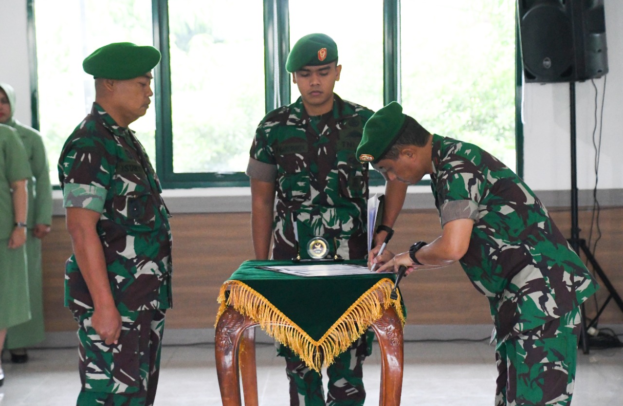 NASIONALXPOS.CO.ID, PALEMBANG – Komandan Korem 044/Gapo Brigjen TNI M Naudi Nurdika S.I.P M.Si M.Tr (Han), menerima penyerahan jabatan Kepala Seksi Operasi (Kasi Ops) Kasrem 044/Gapo Kolonel Inf Sunardi Isnanto S.H, Selasa (25/10/2022).