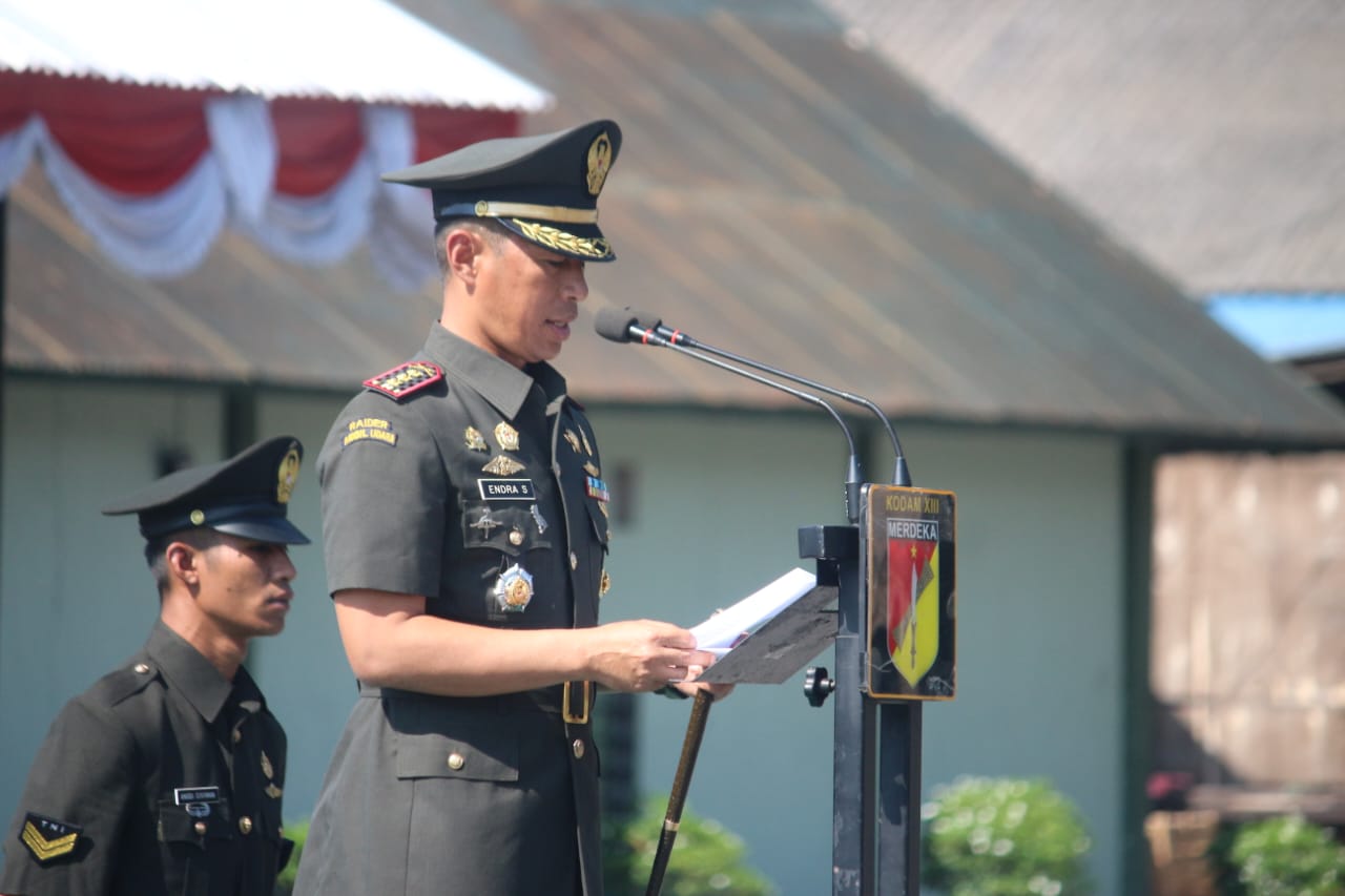 Sementara, Pangdam XIII/Merdeka Mayjen TNI Legowo W.R. Jatmiko, S.I.P., M.M., dalam Amanatnya yang dibacakan Irup,