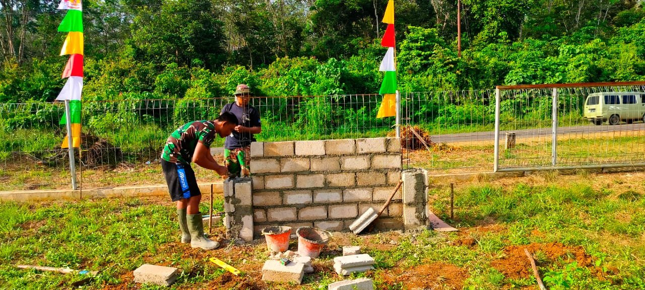 Anggota Satgas bersama warga membuatkan papan nama sekolah yang baru, dimana pada waktu pengerjaan perehaban kami melihat papan nama yang berada di sekolah sudah tidak bagus kerena lapuk dan tua, sehingga kami dan warga membuat dan menggantiya dengan yang baru dan permanen menggunakan bangunan dari beton, ujarnya.