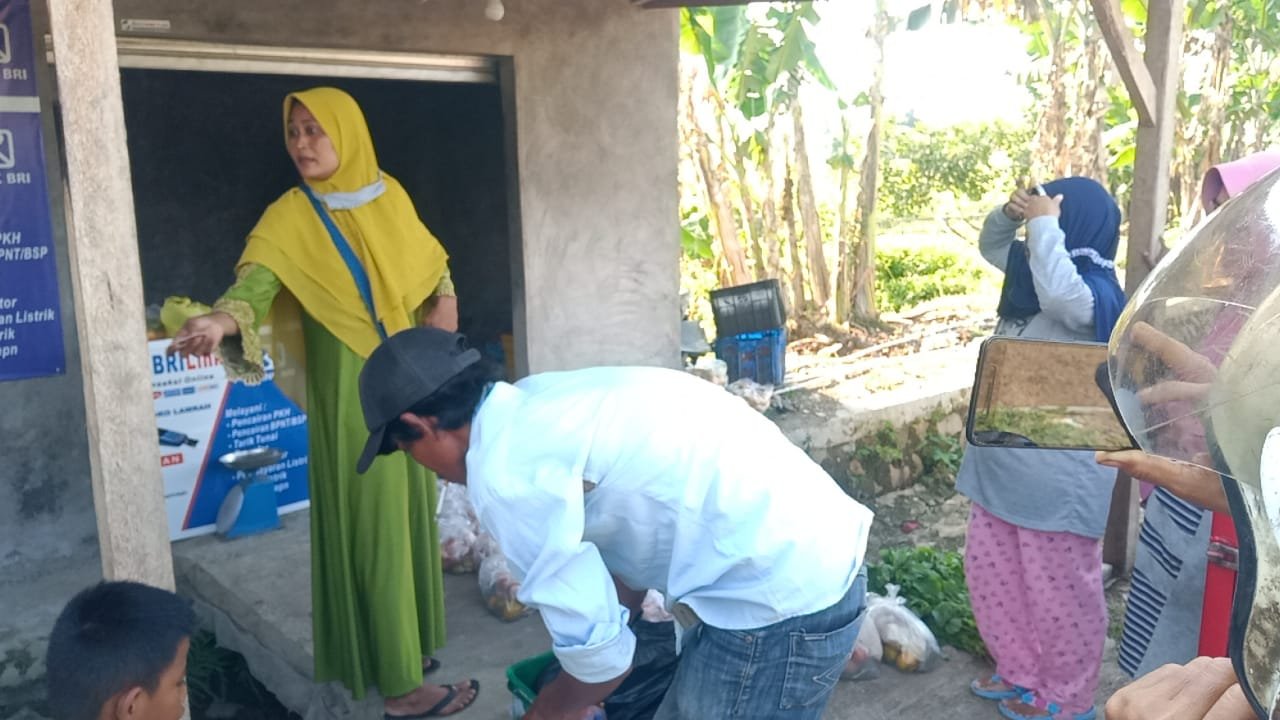 Ibu lamrah, selaku agen Brilink menjelaskan. “, Ini bantun tahap satu untuk tigaratus (300) Keluarga Penerima manfaat (KPM). Adapun setiap KPM, menerima satu paket sebanyak. Satu karung Beras ukuran 10Kg. Satu kilo ayam, Tempe,Jeruk, Sayur,kacang ijo dan satu kilo telur”,Paparnya.