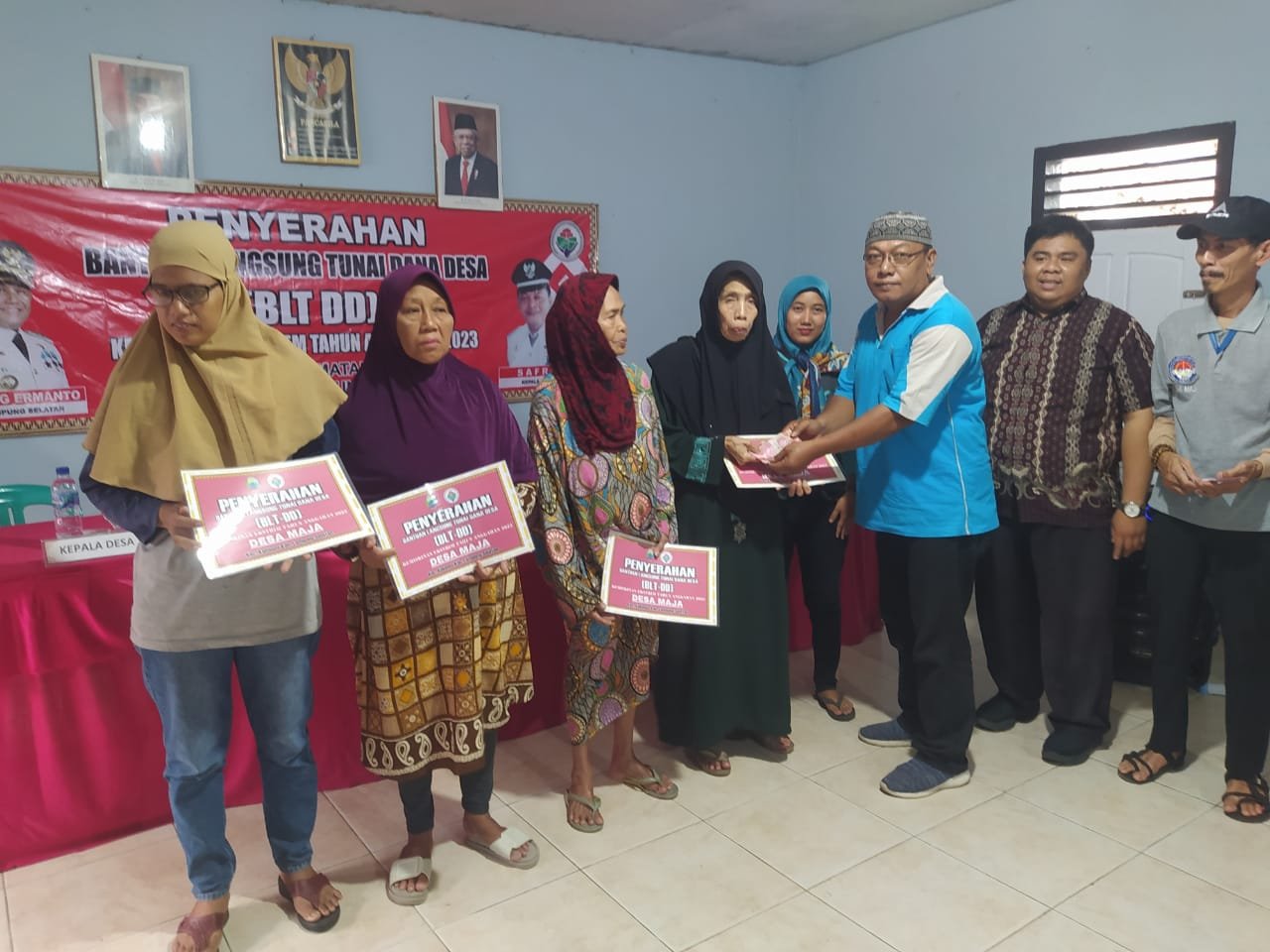 Pembagian BLT-DD di hadiri , Kepala Desa (Kades) Maja Safrian, Ridwan Pendamping Desa, BPD, Babinsa dan Bhabinkamtibmas serta seluruh Keluarga Penerima manfaat (KPM), dan seluruh Aparatur Desa Maja