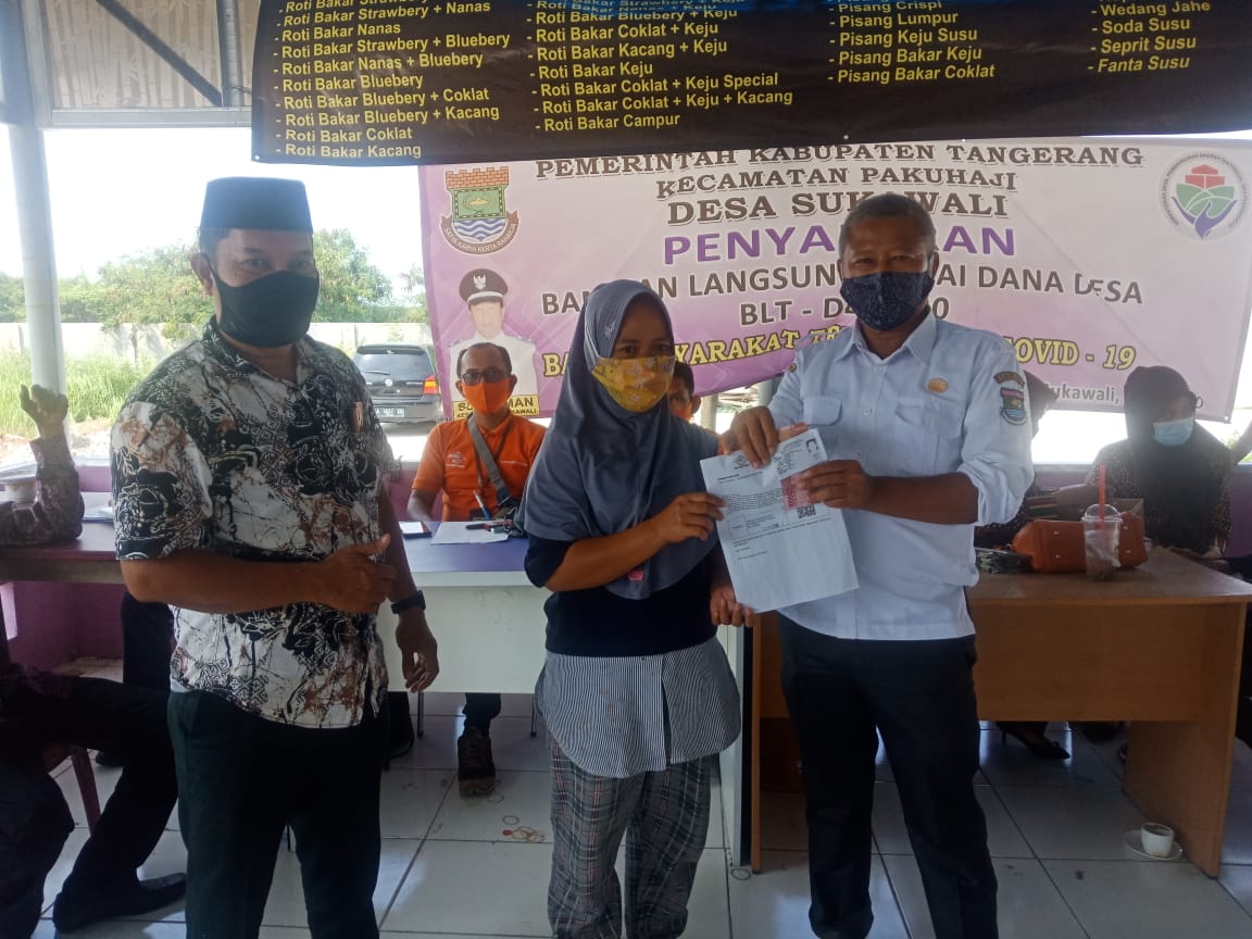 NASIONALXPOS.CO.ID, TANGERANG – Menagulangi dampak pandemi Covid -19 pemerintah provinsi menyaluran Bantuan Sosial Tunai (BST). di Desa Sukawali, Kecamatan Pakuhaji, Kabupaten Tangerang. Kamis, (11/11/2020).