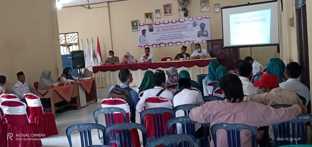 NASIONALXPOS.CO.ID, LAMSEL – Gelar musyawarah rencana pembangunan desa (MUSRENBANGDES) sekaligus penetapan Rancangan Kerja Pemerintah Desa (RKPDES) TA 2023. di Aula Desa Karang Sari, Kecamatan Ketapang, Kabupaten Lampung Selatan, Provinsi Lampung. Pada Rabu, (26/10/2022).