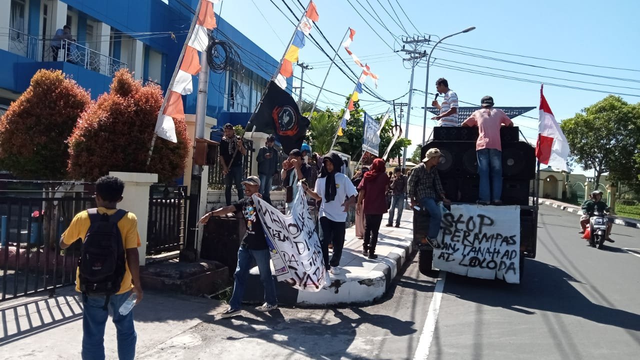 Selain di Kantor Ditreskrimsus, masa aksi juga mendatangi Kantor RRI Ternate. Dikesmpatan itu Fahrul Ali menguraikan terkait regulasi pertambangan, menurutnya pertambangan emas merupakan salah satu bisnis global yang beroperasi di banyak Negara, salah satunya diindonesa, soal penambangan juga tidak dapat dihindari dari lajunya berinfestasi di provinsi Maluku Utara umumnya, dan Kecamatan Loloda khususnya. Berdasarkan data minerba one map indonesia, terdapat sebanyak 7 perusahaan yang bercokol di Loloda, data tersebut sudah termasuk pengakumulasian dari seluruh perusahaan yang ada juga seara legalitas sudah memiliki izin usaha pertambngan, izin eksplorasi dan produksi,” Jelas Fahrul