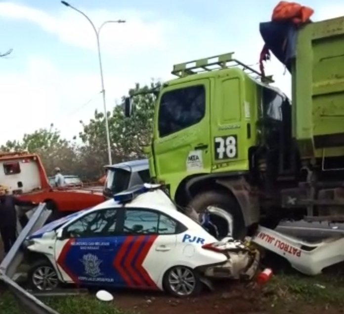 Tabrakan beruntun yang melibatkan 4 kendaraan ini, sedan patroli PJR 1127-15, Suzuki Ertiga B 1979 WZB, kendaraan derek tol milik PT. Astra Toll serta Hino dump truk B 9507 PYW.