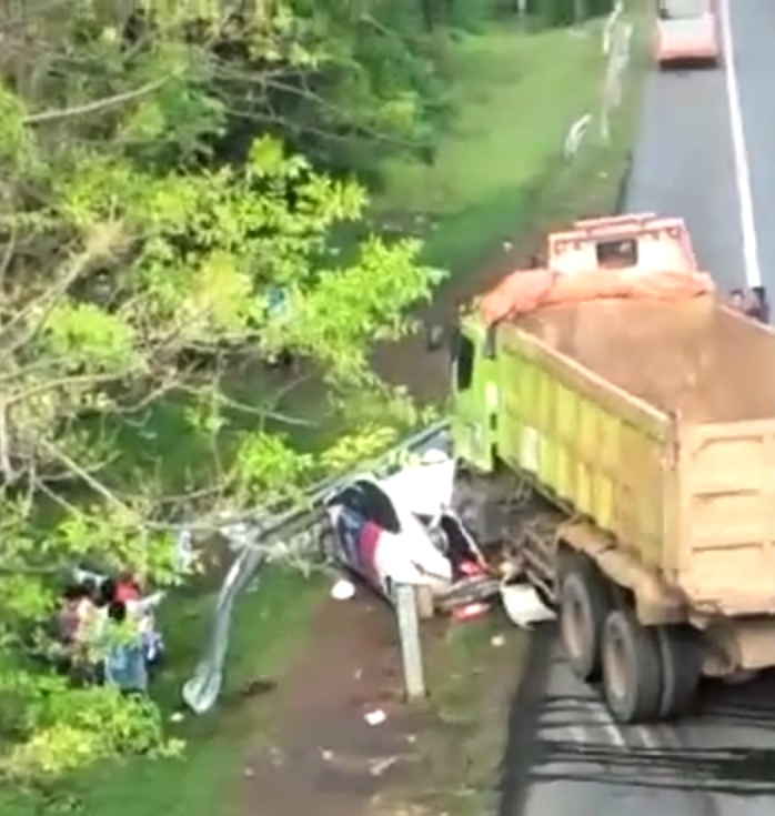 “Untuk penyebabnya diduga sopir dump truk diduga ngantuk tapi akan kita selidiki karena saat ini sopir melarikan diri. Tidak ada korban jiwa, dan kami minta sopir dump truk segera menyerahkan diri,” kata Dirlantas didampingi Kasubdit Gakkum AKBP Hamdani.