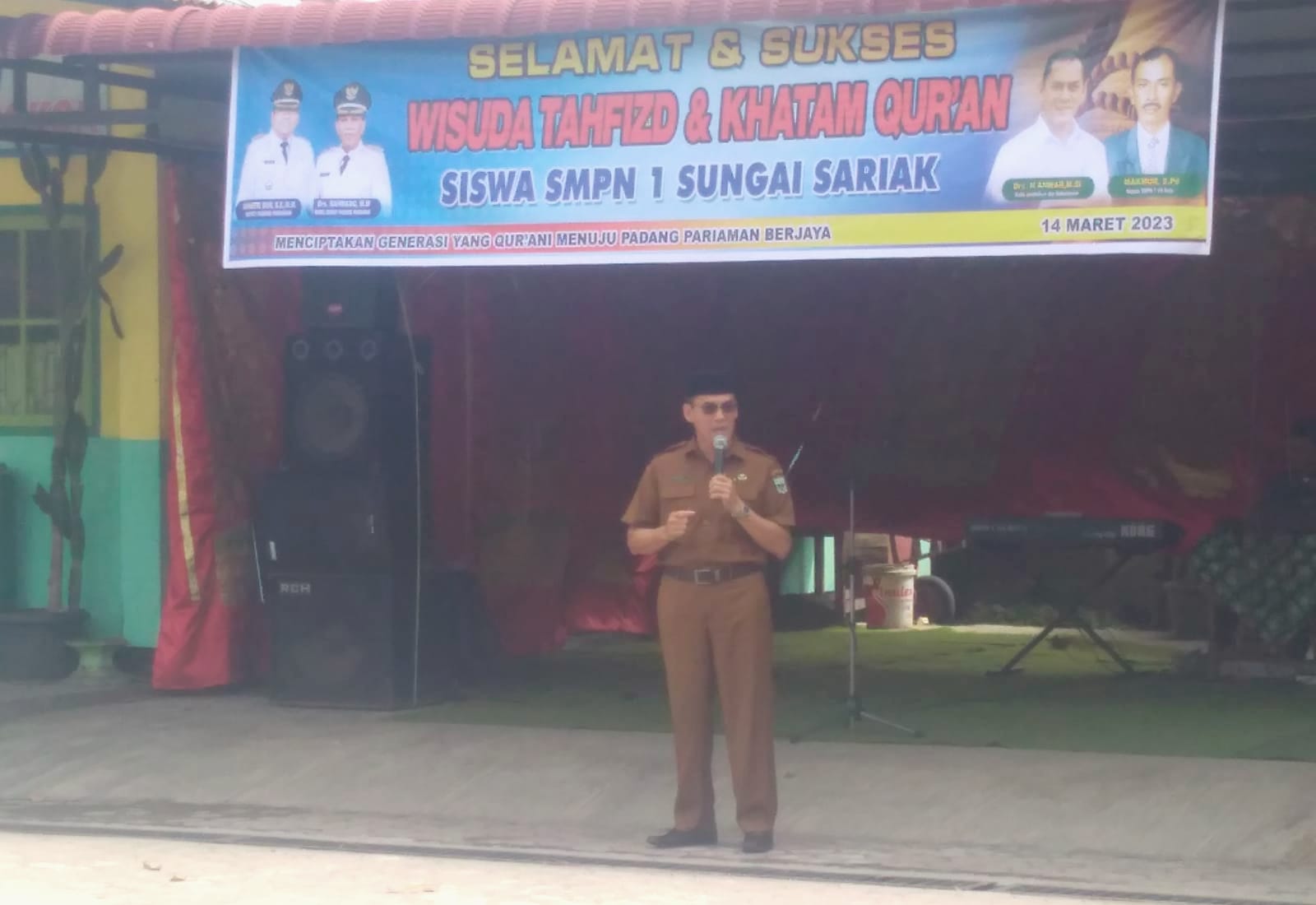 Dalam sambutannya kepala Dinas Pendidikan Drs, H.Anwar,M.Si. memberikan apresiasi kepada Kepala Sekolah SMPN 1 Vll Koto Sungai Sarik Makmur S,Pd.yang menyelenggarakan Wisuda Tahfidz dan khatam Al-Qur’an bagi peserta didik SMPN 1 Vll Koto Sungai Sarik.
