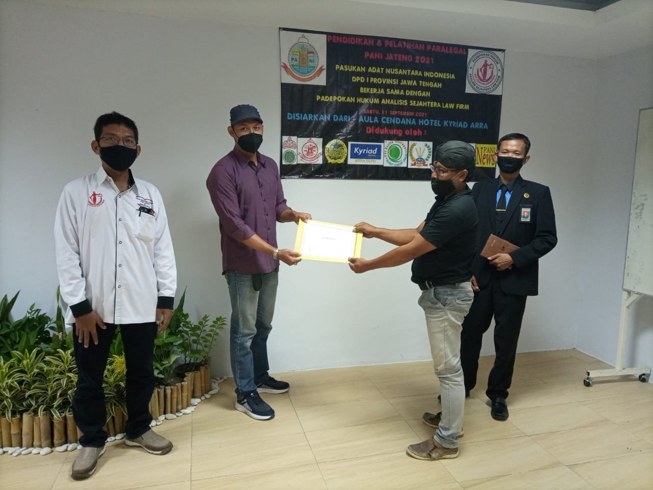 NASIONALXPOS.CO.ID, BLORA – Diklat paralegal PANI 2021 (Pendampingan Hukum Bagi Semua Warga Negara Indonesia), bertempat di aula Cendana Hotel Kyriad Arra Tambakromo Cepu, yang diselenggarakan oleh Pasukan Adat Nusantara Indonesia (PANI) DPD I Povinsi Jawa Tengah, bekerjasama dengan padepokan hukum Analisis Sejahtera LAW FIRM, sukses, Sabtu (11/9/2021).