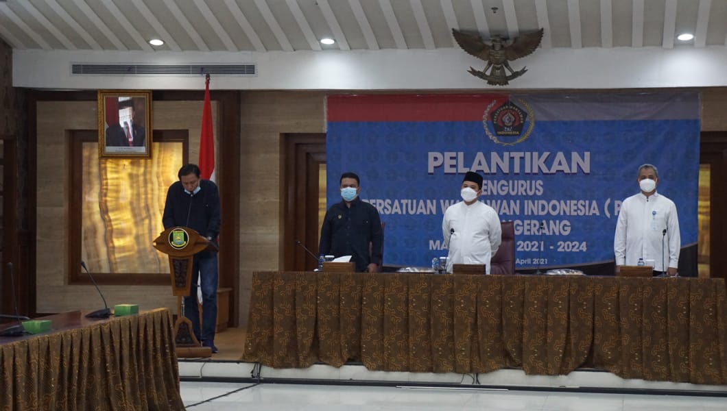 Para pengurus PWI Kota Tangerang tersebut dilantik langsung oleh Ketua PWI Banten Rian Nopandra di Gedung Pusat Pemerintahan Kota Tangerang, Jumat (9/4/2021).