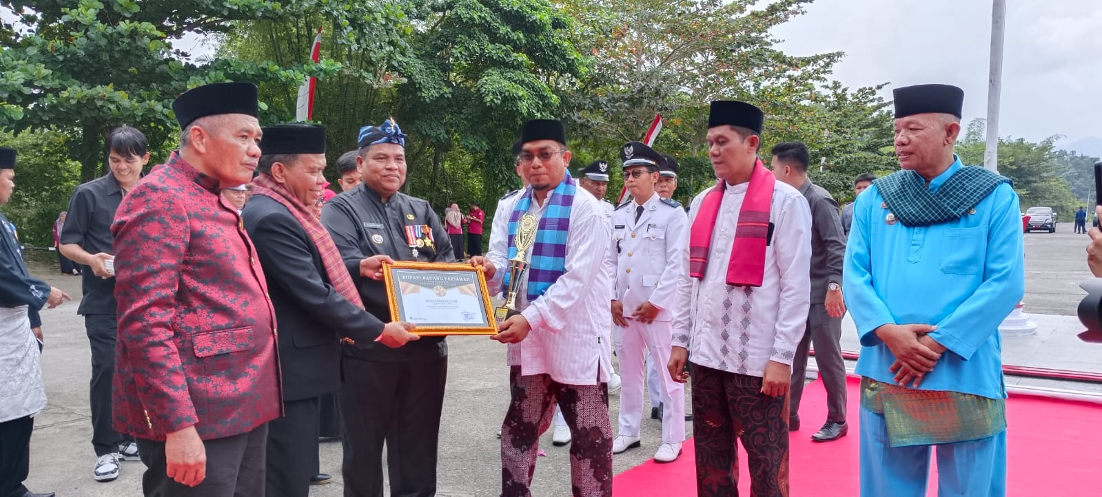 NASIONALXPOS.CO.ID, SUMBAR – Camat Lubuk Alung Dion Franata terima penghargaan sebagai Camat Teladan Tingkat Kabupaten Padang Pariaman Tahun 2023, penghargaan diserahkan oleh Bupati Padang Pariaman Suhatri Bur setelah prosesi Upacara Detik-detik Proklamasi Kemerdekaan Republik Indonesia Ke 78 di halaman Kantor Bupati di Kawasan IKK Parit Malintang, pada Kamis (17/08).