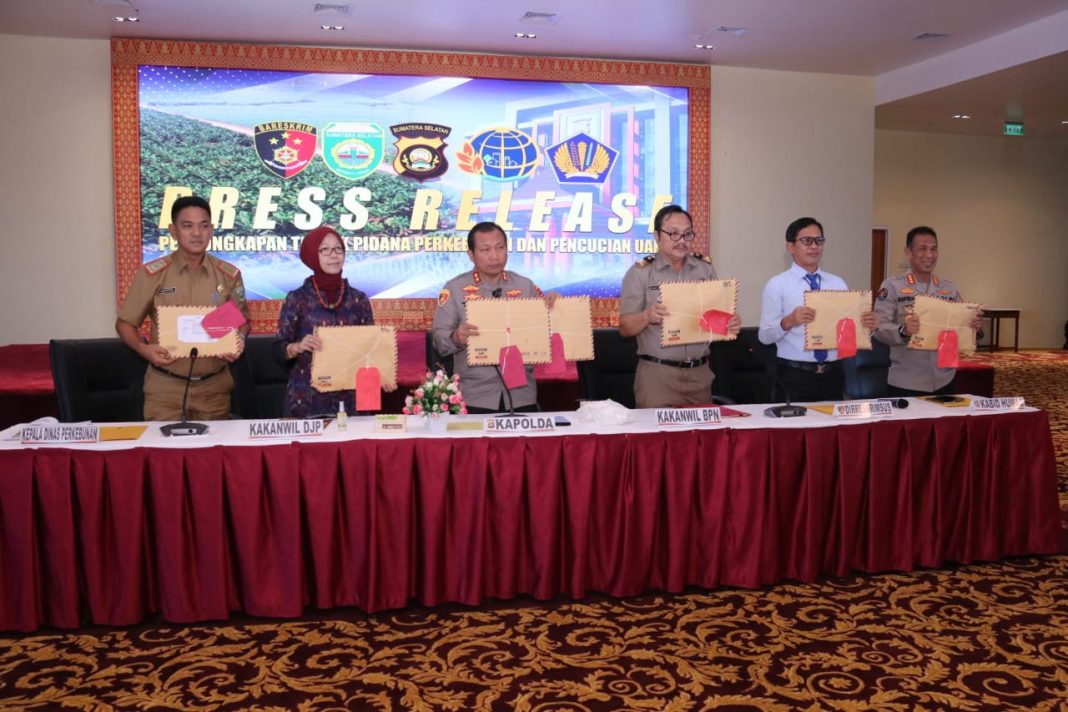 Kapolda Sumsel Irjen Pol Drs Toni Harmanto mengatakan, bahwa terungkapnya hal ini berkat kaloborasi antara anggota Ditreskrimsus dengan DJP Sumsel Babel, BPN Sumsel hingga Dinas Perkebunan Sumsel.