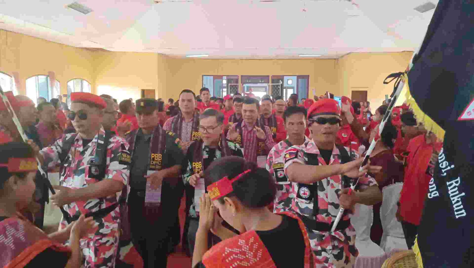 Kedatangan Asisten II disambut dengan Tor Tor ciri khas Batak menyambut seorang raja yang ditandai dengan pemberian sal/ulos dari organisasi DPC. PBB Bungo.